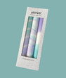 Box of 3 Aqua and Lilac Trio Box Set containing two hand Dip Dye candles and a hand marbled taper candle. The three candles create a beautiful collection to display together or to be used indivually.